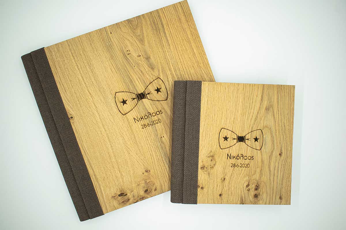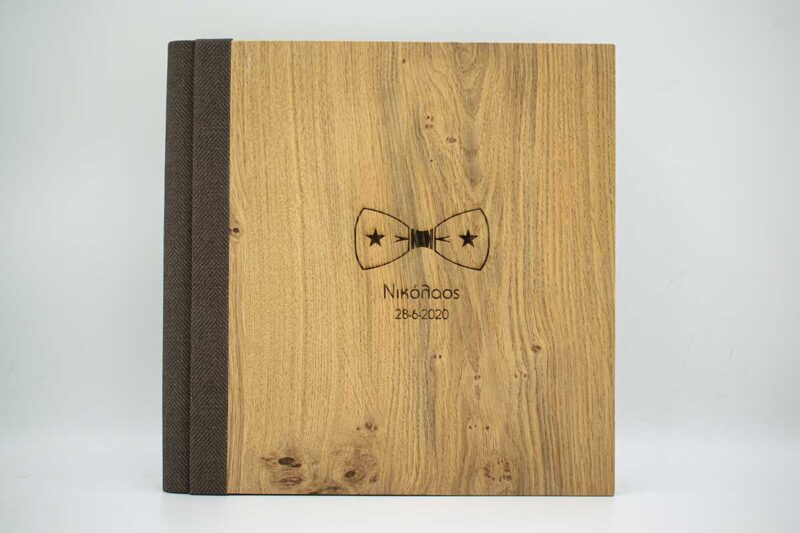 Ξύλινο άλμπουμ βάπτισης σε φυσική απόχρωση με δερματίνη & εκτύπωση uv το γραφίκο της επιλογής σας.