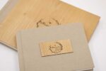 Ξύλινο άλμπουμ βάπτισης σε φυσική απόχρωση με δερματίνη & εκτύπωση uv το γραφίκο της επιλογής σας.