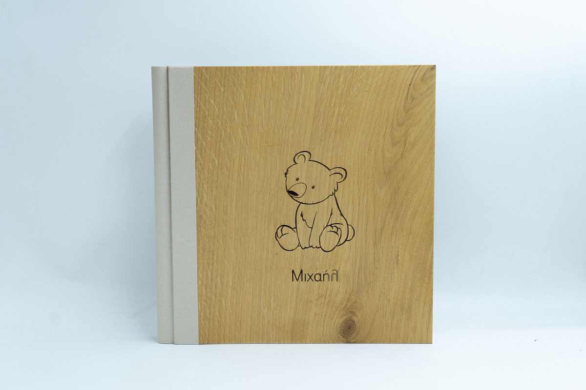 Άλμπουμ Βάπτισης σε διασταση 30×30 με Ξύλινο εξώφυλλο και δερματίνη.Εκτύπωση uv πανω στο ξύλο.