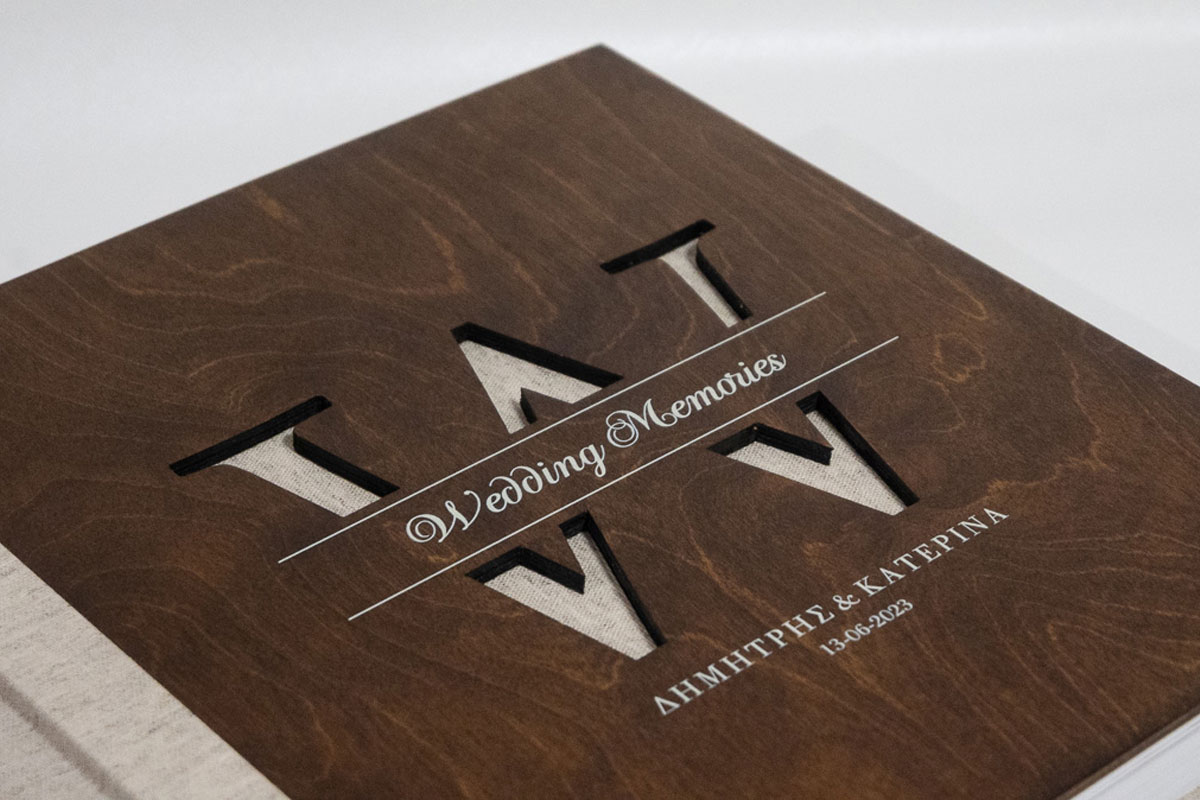 Άλμπουμ γάμου διάσταση 30×30 με φωτογραφία τυπωμενη σε plexiglass και εκτύπωση UV στην δερματίνη το γραφικο της επιλογής σας.