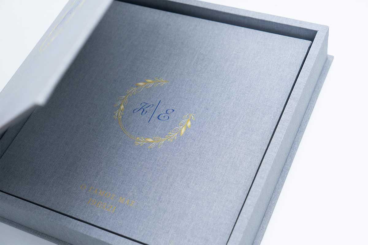 Άλμπουμ γάμου σε διάσταση 30*60 με uv print εκτύπωση το γραφικό της επιλογής σας σε ειδικό αδιαβροχοποιημένο λινό ύφασμα.